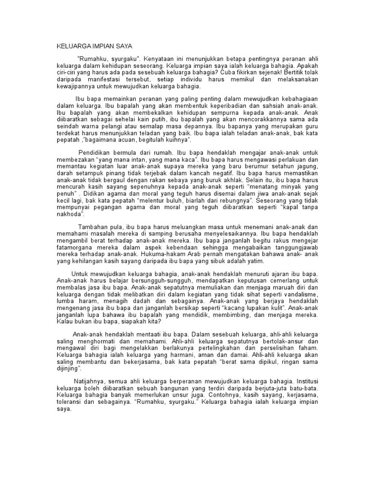 Perkongsian ilmu untuk diamalkan demi menjana iman. Anda boleh menghafal karangan ini untuk membiasakan diri dengan karangan insyak dalam . Maka sebaiknya menjawab dengan keluarga yang paling dekat misalnya: